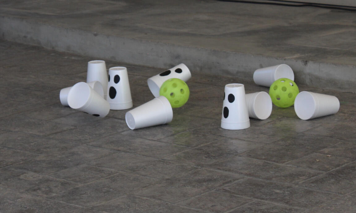 La actividad consistía en derribar la mayor cantidad de fantasmas (se utilizó material reciclado), con tres pelotas. Los mayores puntajes obtuvieron un pequeño obsequio.